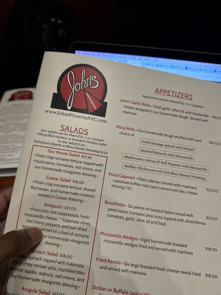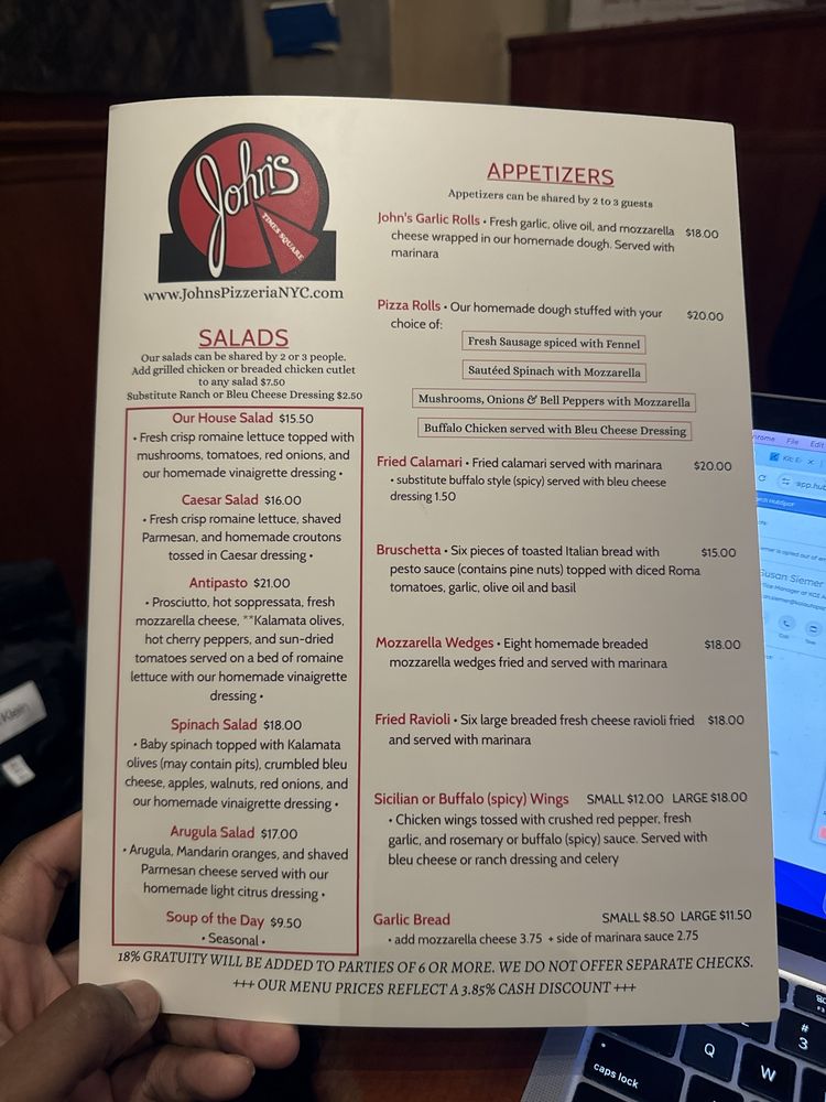 Introducing the menu at John's of Times Square, a celebrated gem in the bustling heart of New York City, where Italian flavors take center stage. Known for its authentic, hand-tossed pizzas crafted with fresh ingredients, this restaurant invites guests to indulge in a variety of toppings, ensuring there's something for everyone—vegan and vegetarian options included.