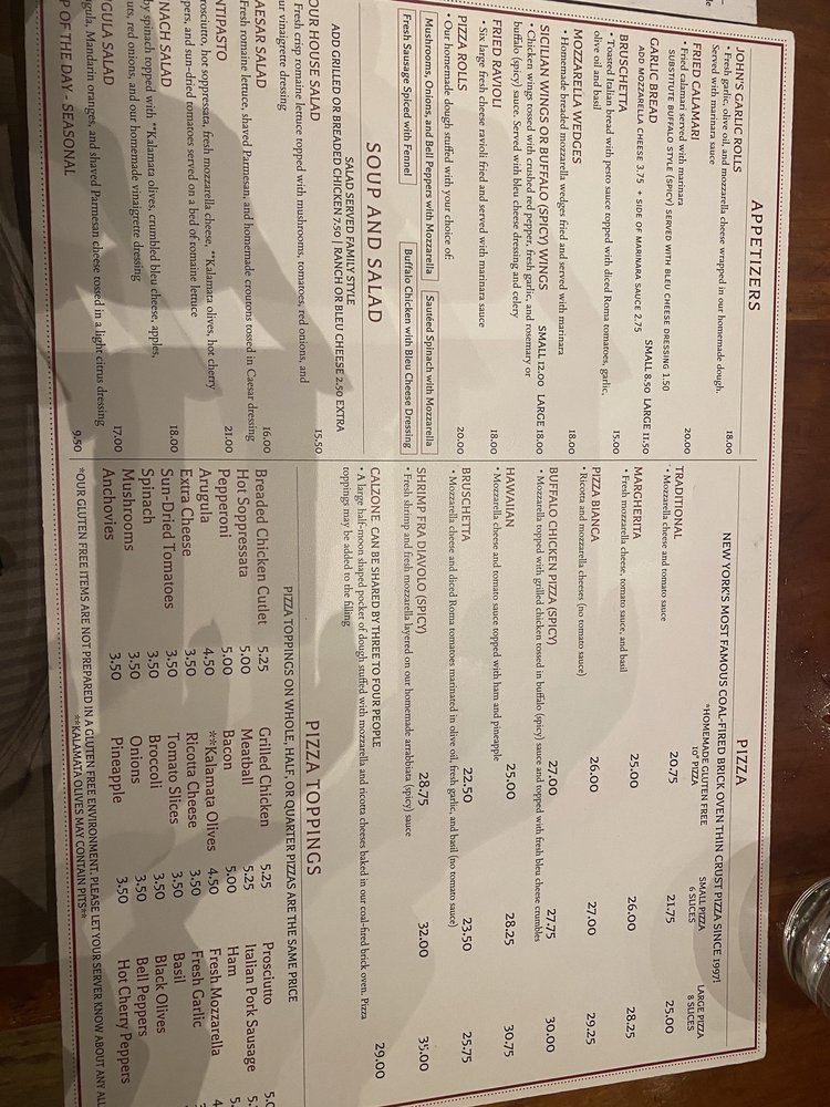 The culinary experience extends beyond pizza, featuring a range of hearty pasta dishes and delectable appetizers, perfect for sharing. Patrons will appreciate the casual ambiance, complemented by a full bar that enhances the evening out. With amenities like outdoor seating, private dining, and options for takeout or delivery, John's caters to both intimate dinners and lively group celebrations.